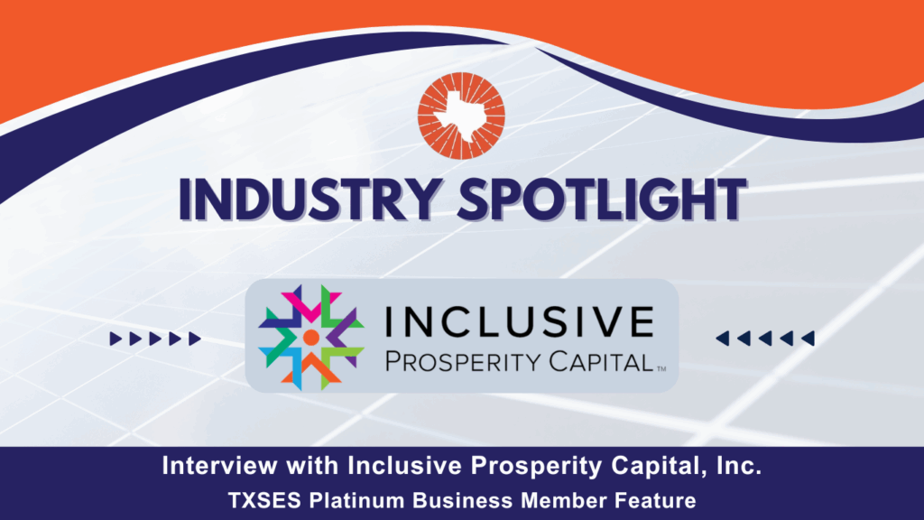 In each Solar Report newsletter, we feature one of our highly regarded Platinum Business Members with an exclusive interview. This month, TXSES Communications Director Tamara Kowalski reached out to Inclusive Prosperity Capital (IPC) Smart-E Loan Program National Director Madeline Priest to learn about the company’s mission, accomplishments, and impacts on customers. Origins and Leadership Inclusive Prosperity Capital, Inc. (IPC) is […]