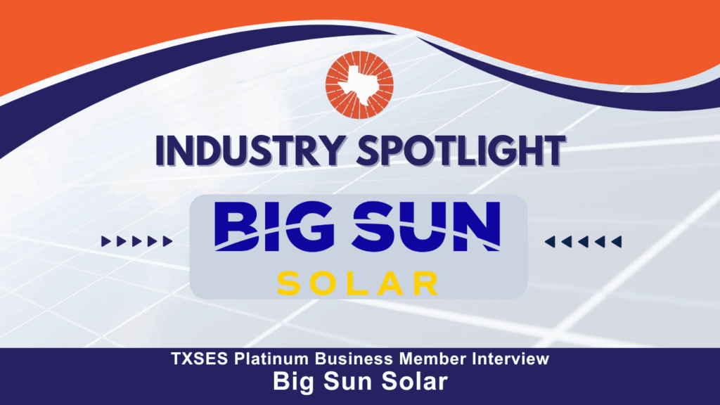 In each Solar Report newsletter, we feature one of our highly regarded Platinum Business Members with an exclusive interview. This month, TXSES Communications Director Tamara Kowalski reached out to Big Sun Solar‘s Co-founder and President Jason Pittman to learn about the company’s mission, accomplishments, and impacts on customers. Origins and Leadership Big Sun Solar was founded in San Antonio with […]