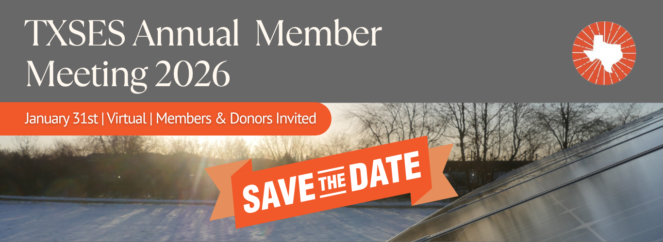 All TXSES members and donors are invited to attend our Annual Member Meeting as we kick off an exciting new year for solar energy in Texas! TXSES members and donors will receive an email with Zoom link to attend.